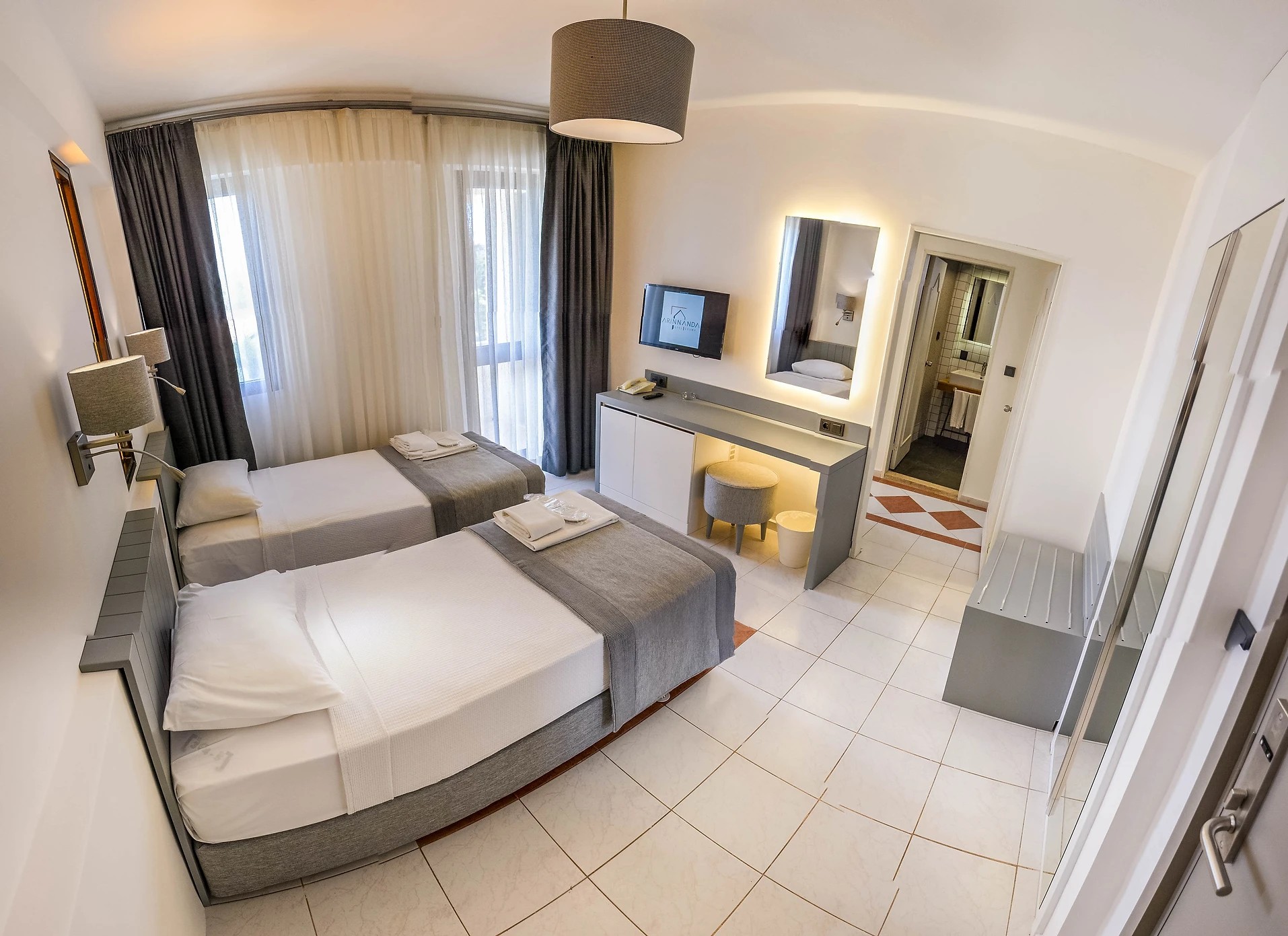 There is only 1 family room on each floor. Our Family Rooms consist of 2 separate rooms with a door in between, 2 adults, 2 children and 1 baby can comfortably stay in our rooms with shared bathroom and shared balcony.